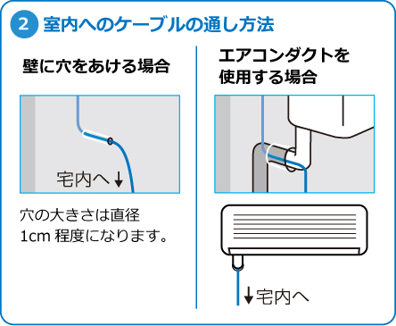 [注意事項]※お客様のご自宅状況により、工事が不可能な場合もございます。※成端箱またはV-ONU(光通信端末)からの宅内線が20mを超える場合追加料金が必要です。※標準工事以外は追加料金が必要です。※貸与機器以外の故障・修理にかかる費用はお客様のこ負担となります。※その他工事方法については、別途こ相談ください。※保守・管理のため、お客様による機器の移動・取り外しは固くお断りいたします。
